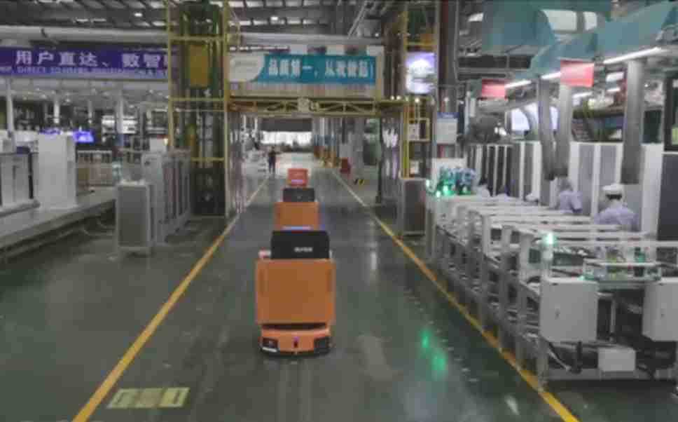 为车载冰箱物流配送打造的智能解决方案,,,包含产中物流通过潜伏举升AMR搬运至线边,,,产后成品物流智能仓储,,流程包含产中物流智能齐套入库,,,,线边安灯叫料AMR智能配送至线边,,,,成品入库、、、、出库,,,,通过无人堆高车机器人,,智能仓储管理替代人工作业管理,,,实现更高存储、、更高效率、、、、更具柔性化的解决方案。。